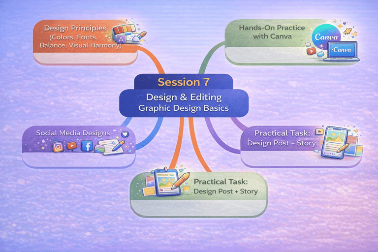 تصميم منشورات ومواد بصرية مناسبة لمنصات التواصل الاجتماعي.